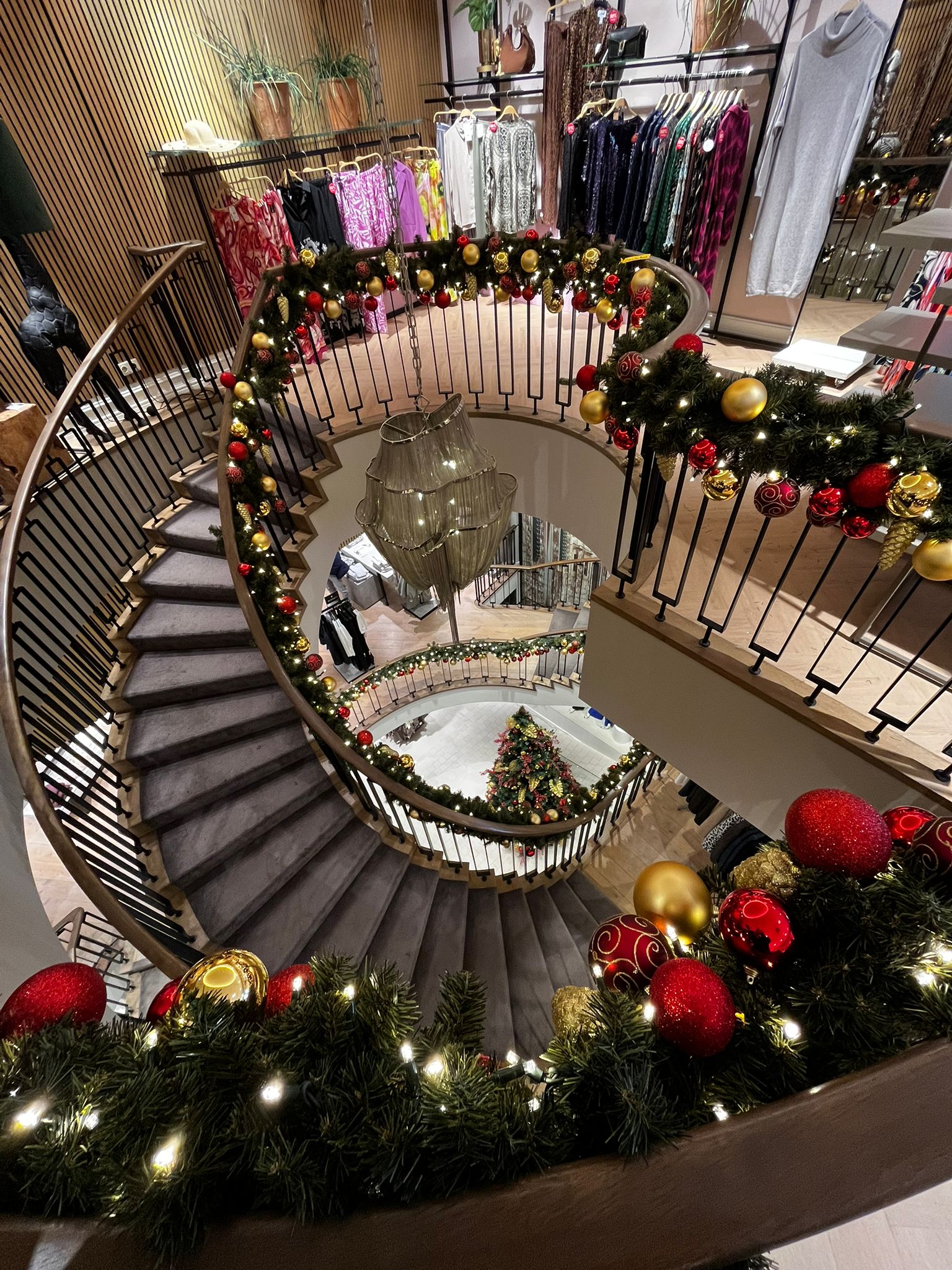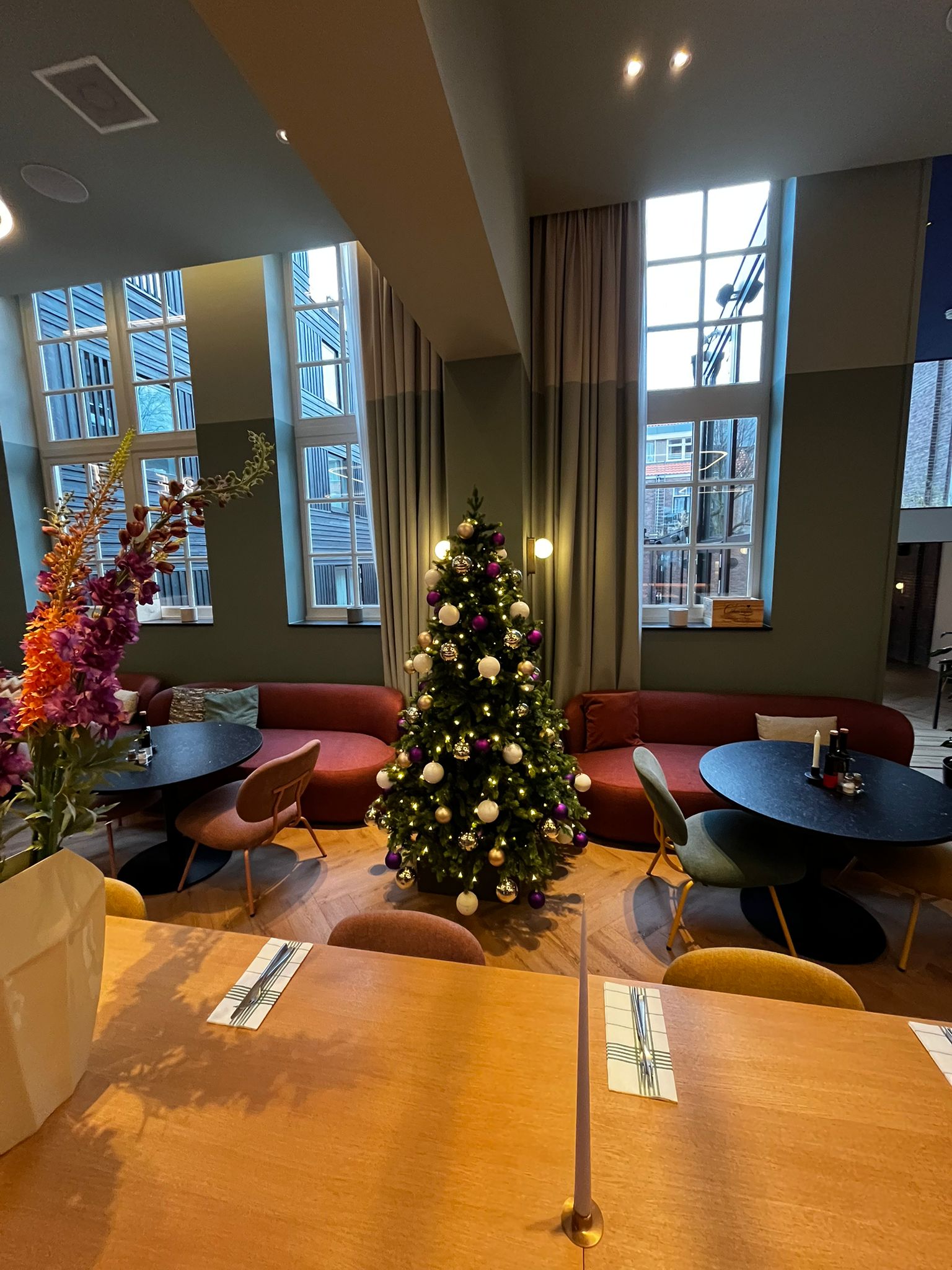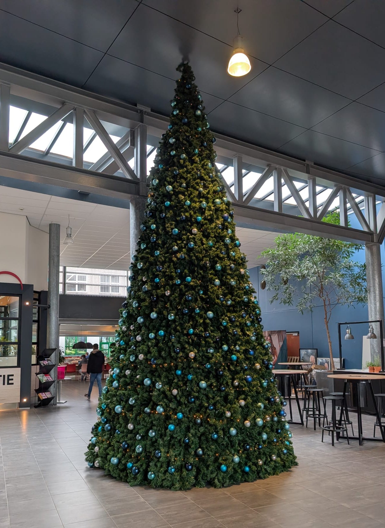 Modern kerstboeket met groen blad en subtiele goudaccenten.